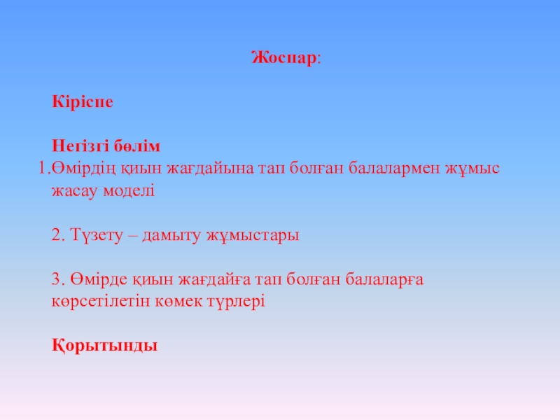 Слайд 1«Өмірде қиын жағдайға тап болған балалармен жұмыс моделі»