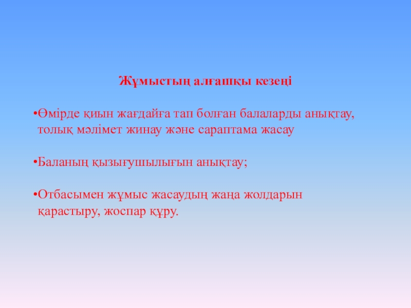 Слайд 7 Жұмыстың алғашқы кезеңі