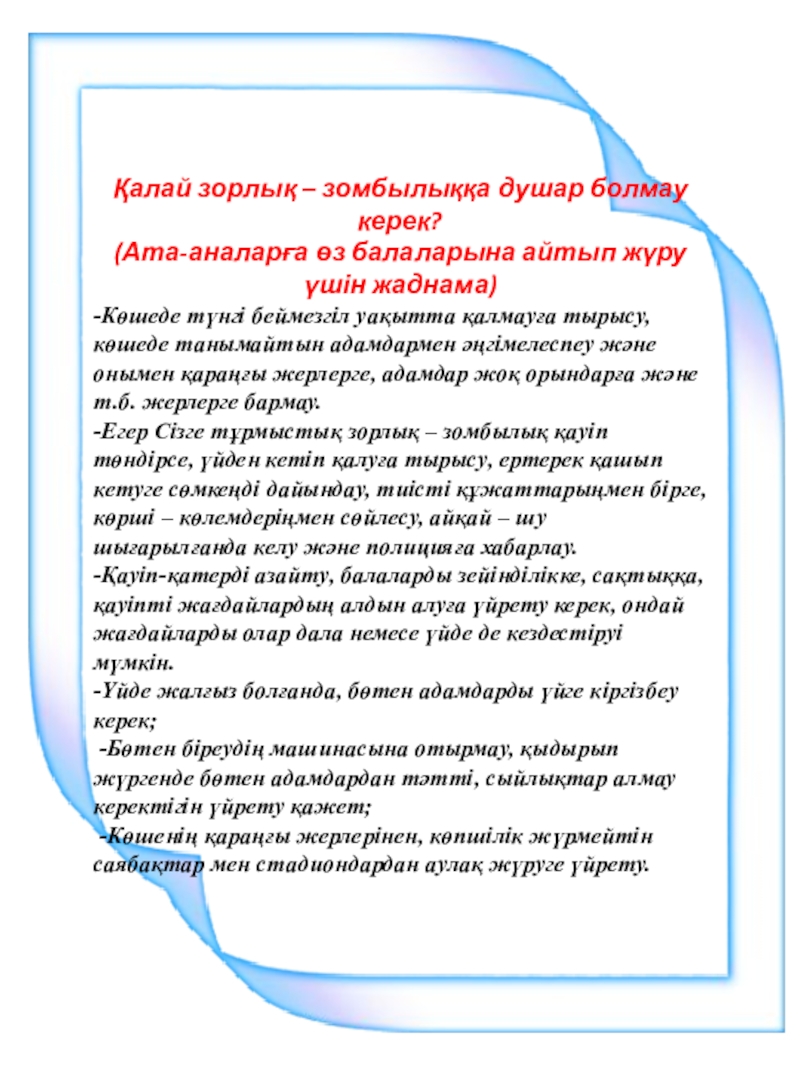 Слайд 2Қалай зорлық – зомбылыққа душар болмау керек?