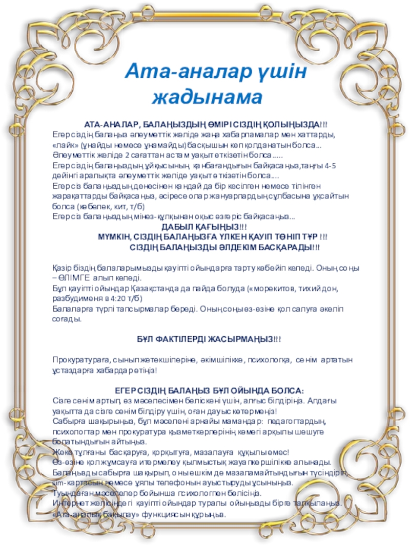 Қазір біздің балаларымызды қауіпті ойындарға тарту көбейіп келеді. Оның соңы – ӨЛІМГЕ алып келеді.
