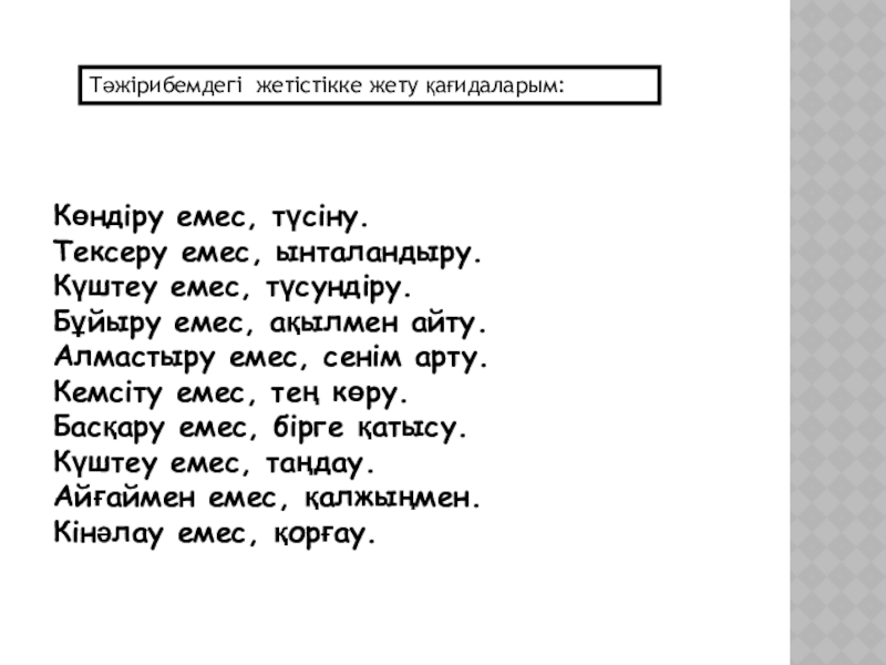 Тәжірибемдегі жетістікке жету қағидаларым: