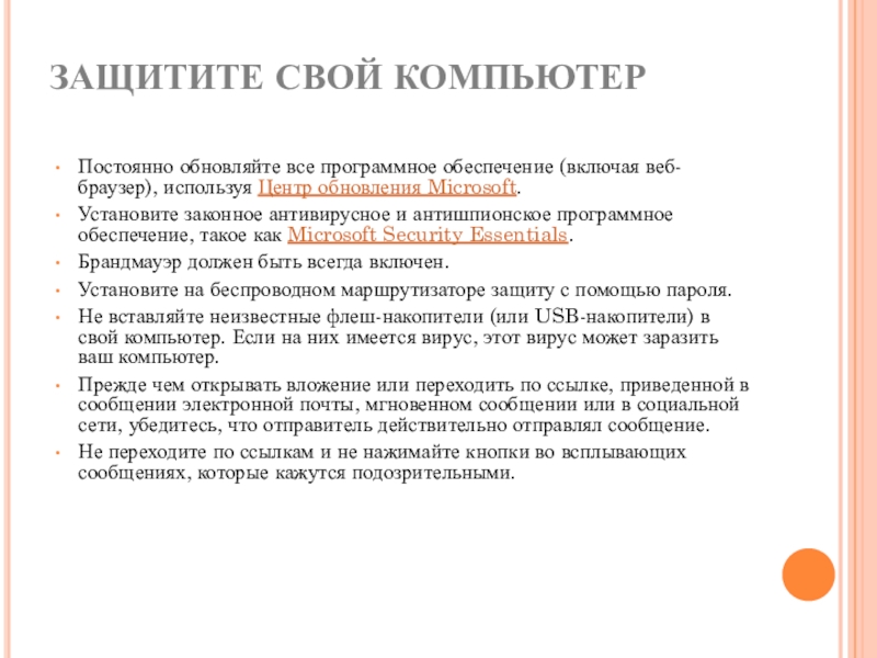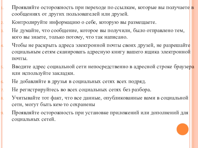 Слайд 6Проявляйте осторожность при переходе по ссылкам, которые вы получаете в сообщениях