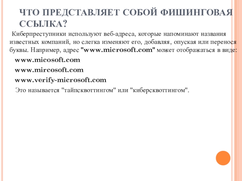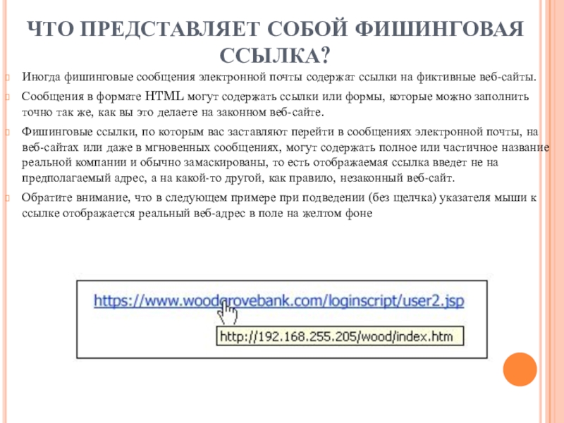 Слайд 10ЧТО ПРЕДСТАВЛЯЕТ СОБОЙ ФИШИНГОВАЯ ССЫЛКА?