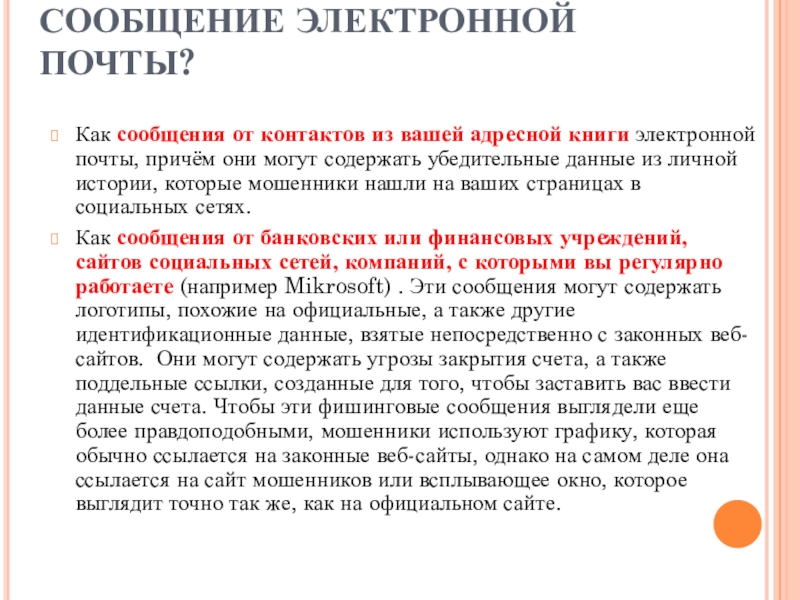 Слайд 8КАК ВЫГЛЯДИТ ФИШИНГОВОЕ СООБЩЕНИЕ ЭЛЕКТРОННОЙ ПОЧТЫ?