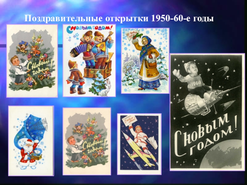 Слайд 21Поздравительные открытки 1950-60-е годы