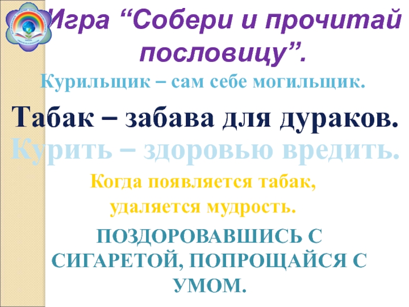 ПОЗДОРОВАВШИСЬ С СИГАРЕТОЙ, ПОПРОЩАЙСЯ С УМОМ.