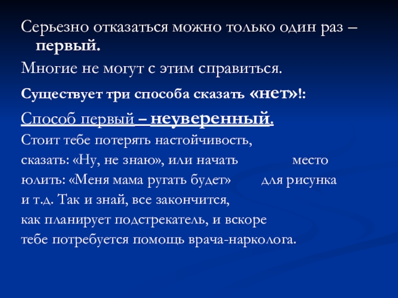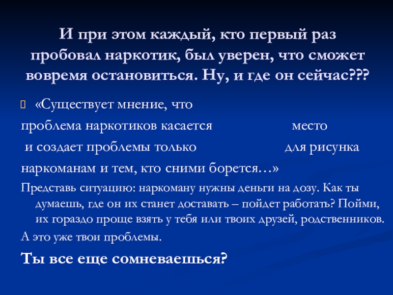 Слайд 4И при этом каждый, кто первый раз пробовал наркотик, был уверен,