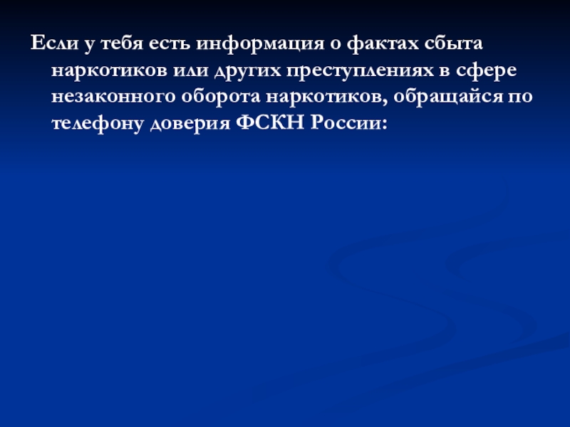 Слайд 16Если у тебя есть информация о фактах сбыта наркотиков или других