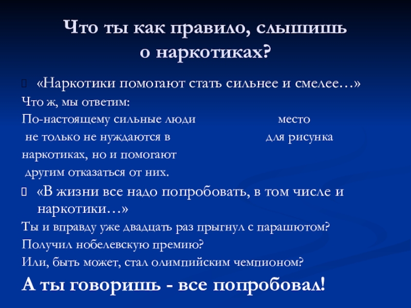 Слайд 3«Наркотики помогают решать жизненные проблемы…»