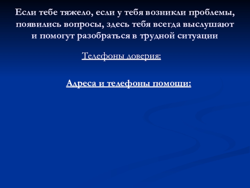 Слайд 14Если тебе тяжело, если у тебя возникли проблемы, появились вопросы, здесь