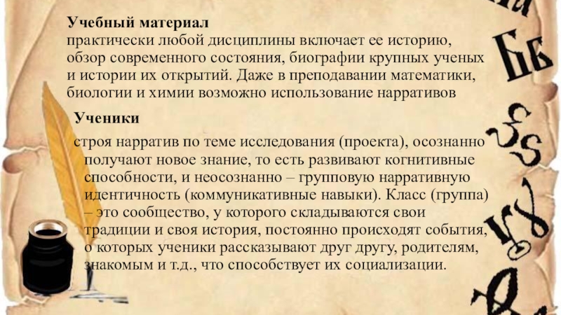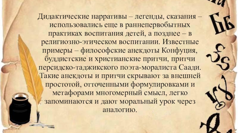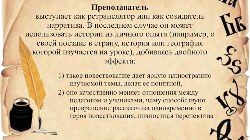 1) такое повествование дает яркую иллюстрацию изучаемой темы, делая ее понятной,