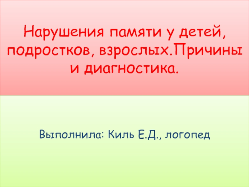 Слайд 1Нарушения памяти у детей, подростков, взрослых.Причины и диагностика.