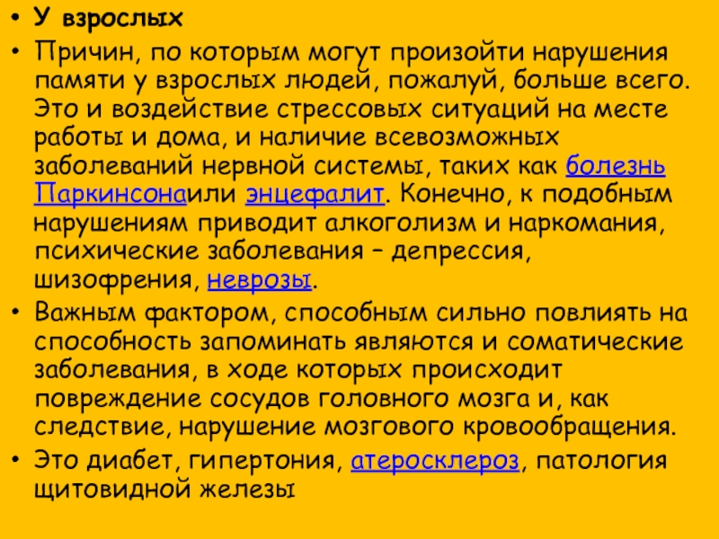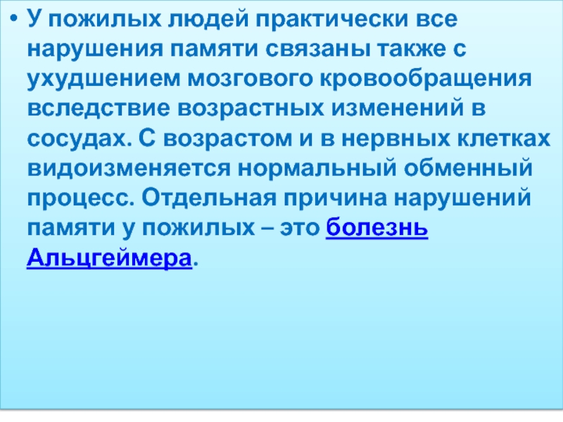Слайд 11У пожилых людей практически все нарушения памяти связаны также с ухудшением