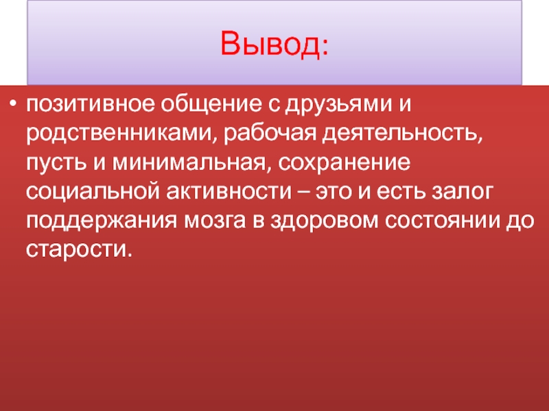 сохранение социальной активности – это и есть залог поддержания мозга в здоровом состоянии до старости.
