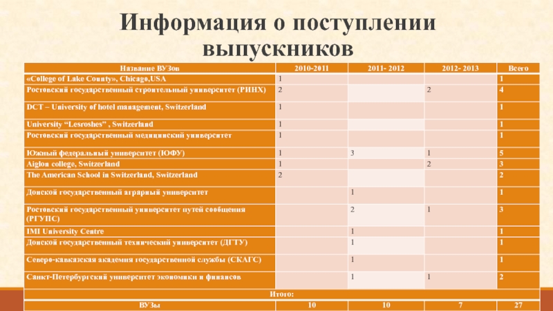Слайд 9Информация о поступлении выпускников