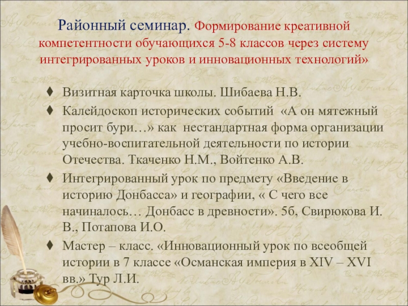 Калейдоскоп исторических событий «А он мятежный просит бури…» как нестандартная форма организации учебно-воспитательной деятельности по истории Отечества. Ткаченко Н.М., Войтенко А.В.
