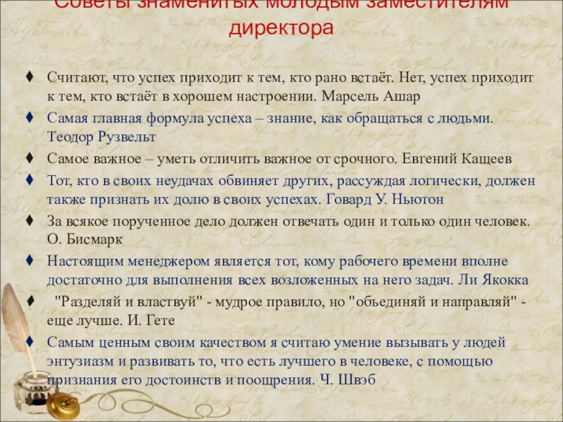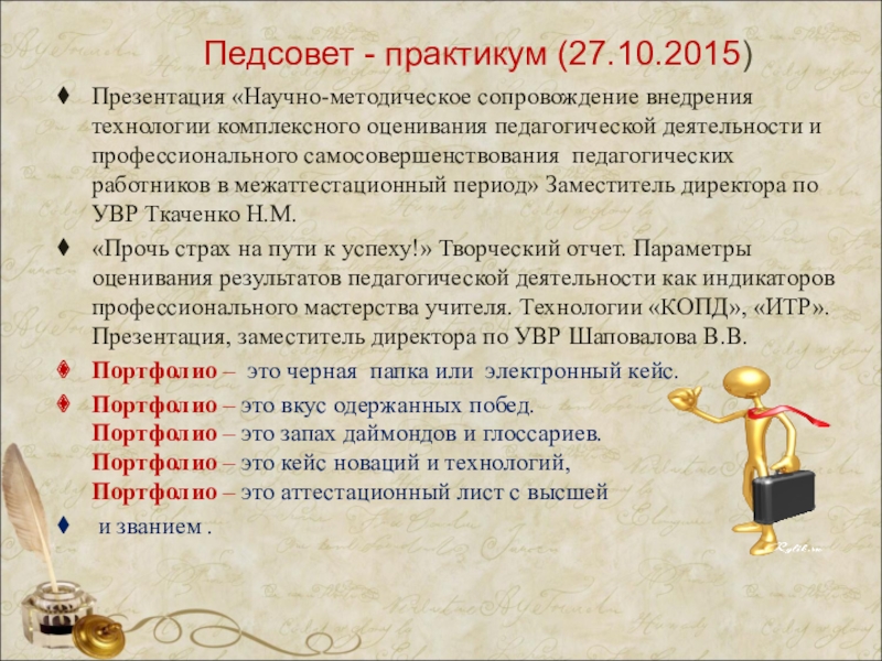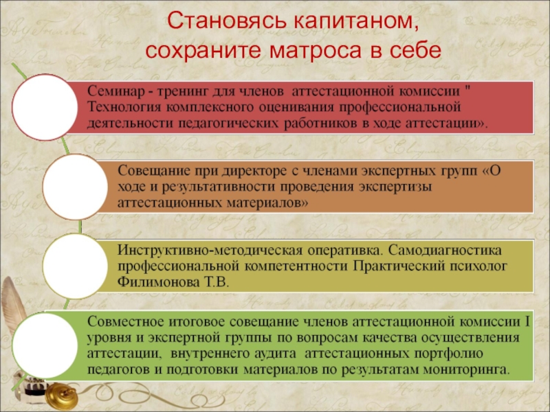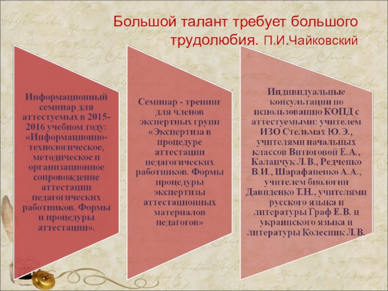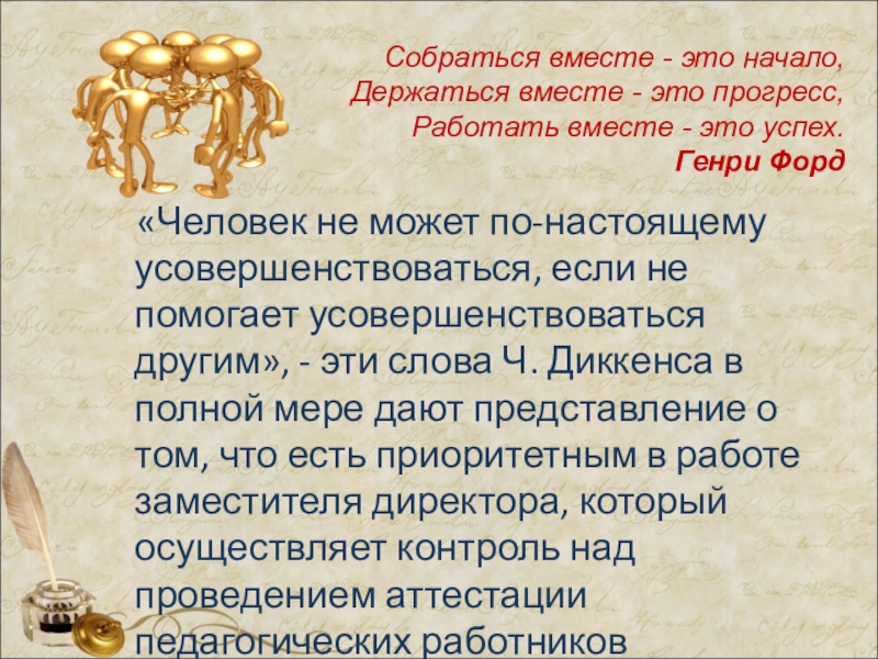 «Человек не может по-настоящему усовершенствоваться, если не помогает усовершенствоваться другим», - эти слова Ч. Диккенса в полной мере дают представление о том, что есть приоритетным в работе заместителя директора, который осуществляет контроль над проведением аттестации педагогических работников