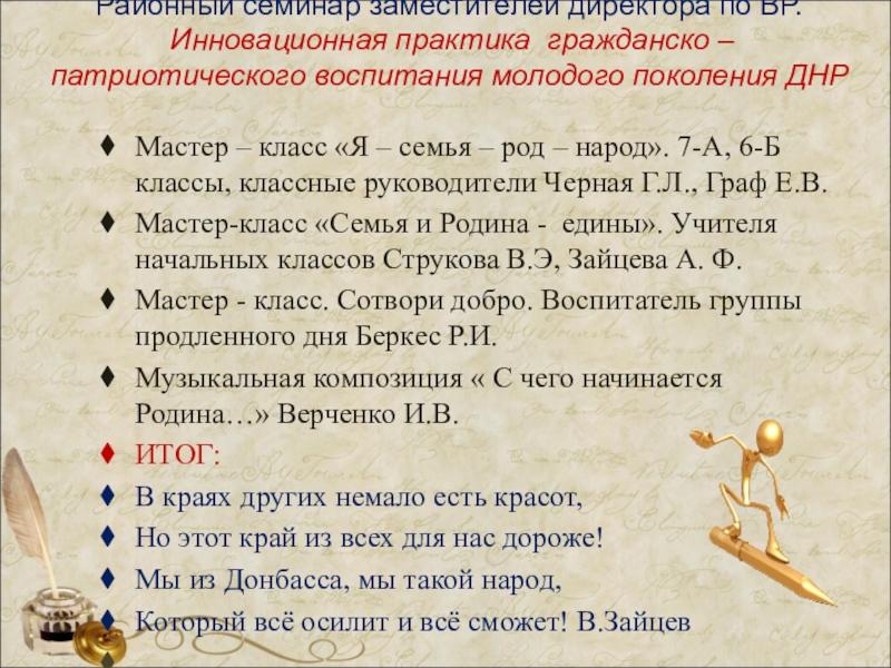 Мастер – класс «Я – семья – род – народ». 7-А, 6-Б классы, классные руководители Черная Г.Л., Граф Е.В.