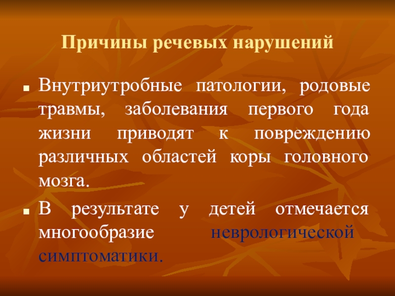 Внутриутробные патологии, родовые травмы, заболевания первого года жизни приводят