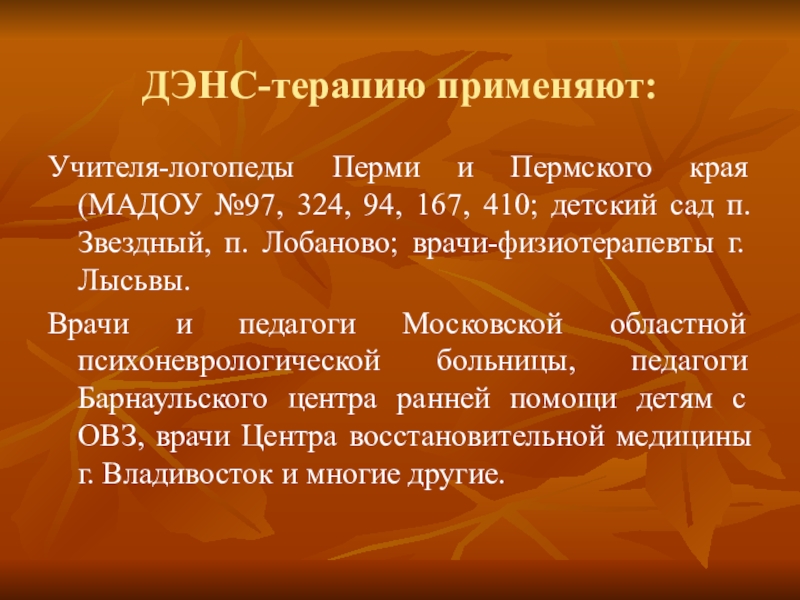 Врачи и педагоги Московской областной психоневрологической больницы, педагоги Барнаульского центра ранней помощи детям с ОВЗ, врачи Центра восстановительной медицины г. Владивосток и многие другие.
