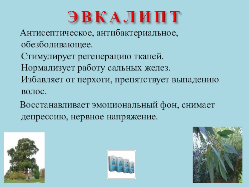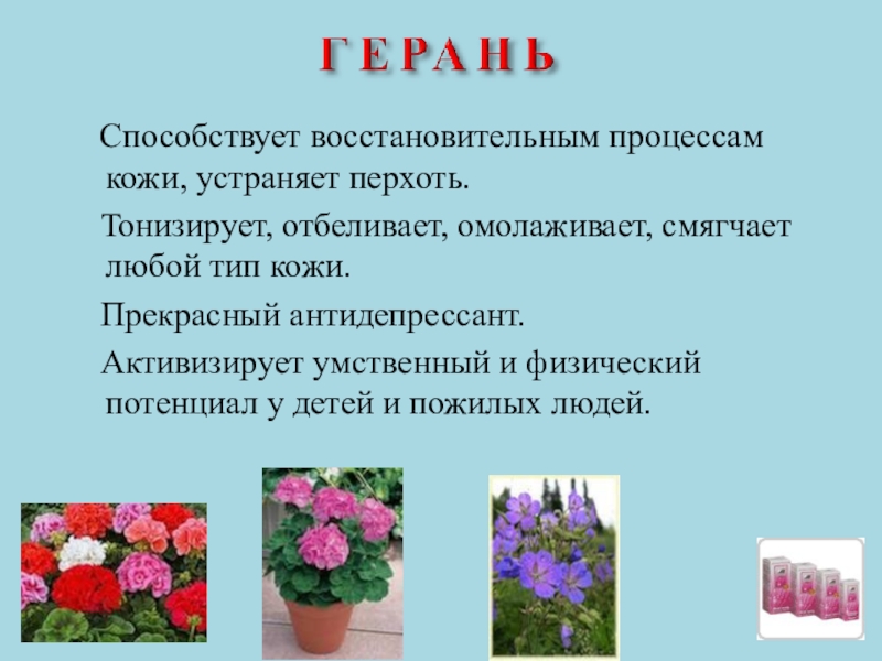 Слайд 6 Способствует восстановительным процессам кожи, устраняет перхоть.