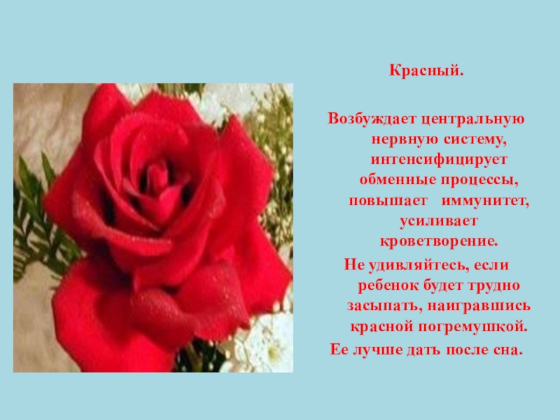 Не удивляйтесь, если ребенок будет трудно засыпать, наигравшись красной погремушкой.