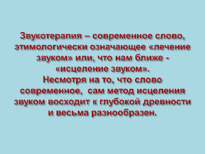 душевное состояние человека. Врачуют естественные и искусственные звуки.