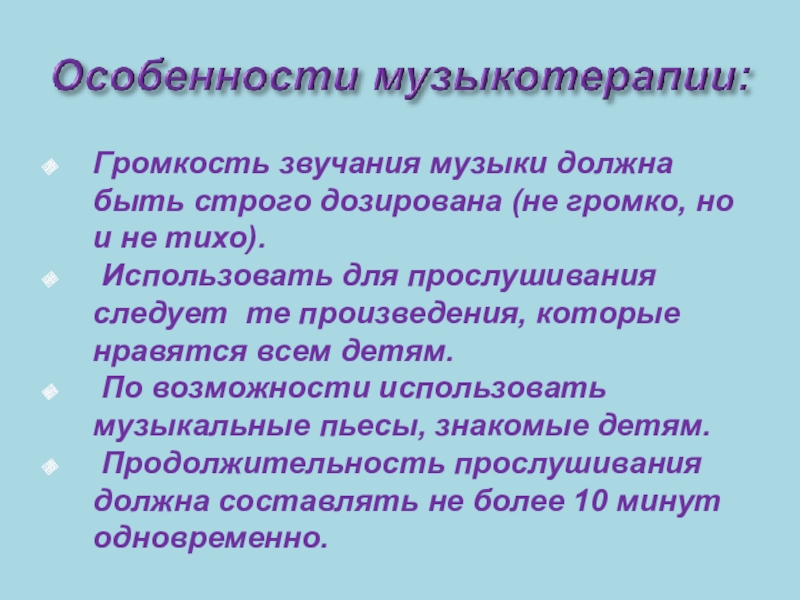 Слайд 29Громкость звучания музыки должна быть строго дозирована (не громко, но и
