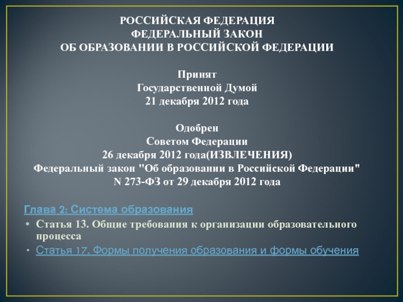 ОБ ОБРАЗОВАНИИ В РОССИЙСКОЙ ФЕДЕРАЦИИ