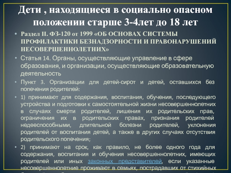 Слайд 30Дети , находящиеся в социально опасном положении старше 3-4лет до 18