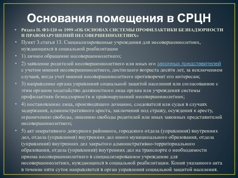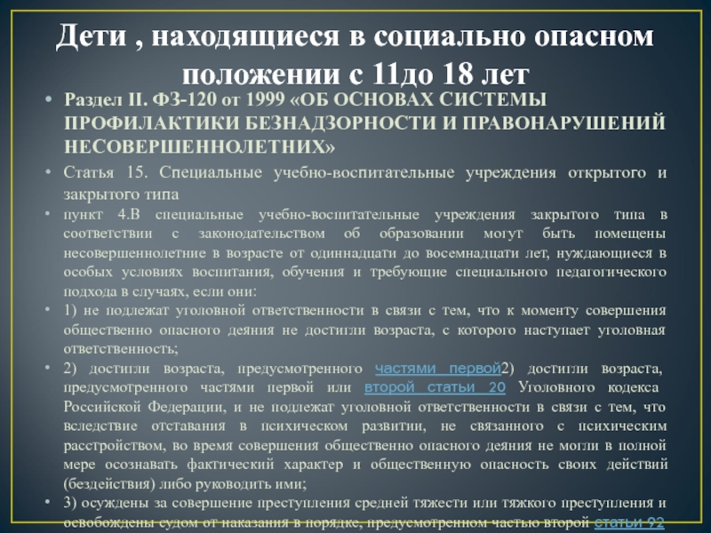 Раздел II. ФЗ-120 от 1999 «ОБ ОСНОВАХ СИСТЕМЫ ПРОФИЛАКТИКИ БЕЗНАДЗОРНОСТИ И ПРАВОНАРУШЕНИЙ НЕСОВЕРШЕННОЛЕТНИХ»