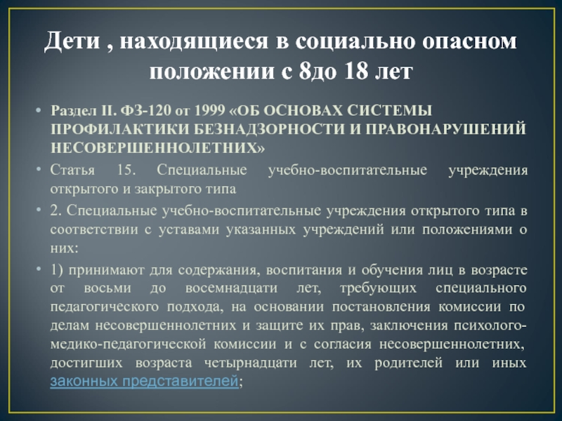 Слайд 34Дети , находящиеся в социально опасном положении с 8до 18 лет