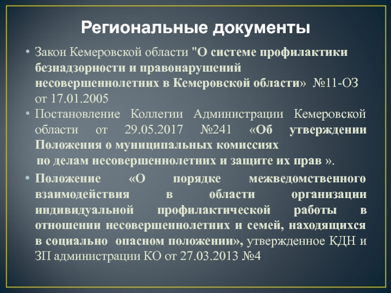 Закон Кемеровской области "О системе профилактики безнадзорности и правонарушений несовершеннолетних