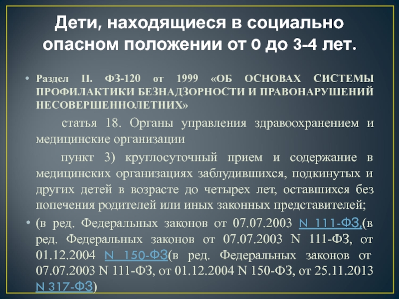 Слайд 29Дети, находящиеся в социально опасном положении от 0 до 3-4 лет.