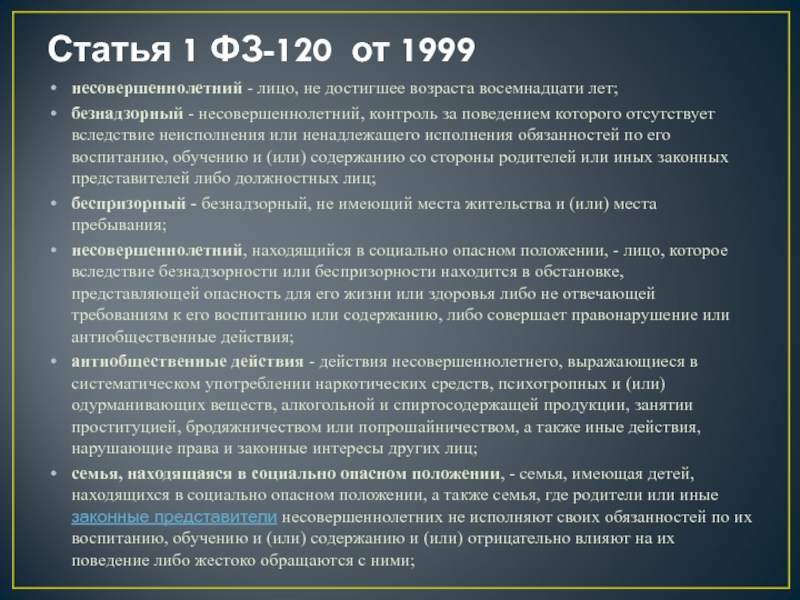 Слайд 21Статья 1 ФЗ-120 от 1999