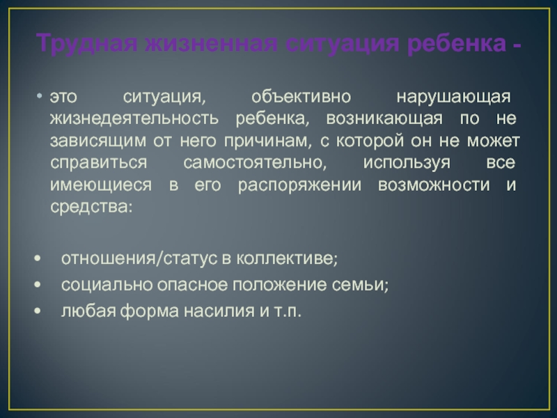 это ситуация, объективно нарушающая жизнедеятельность ребенка, возникающая