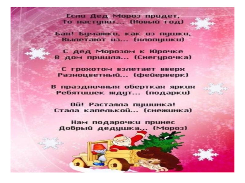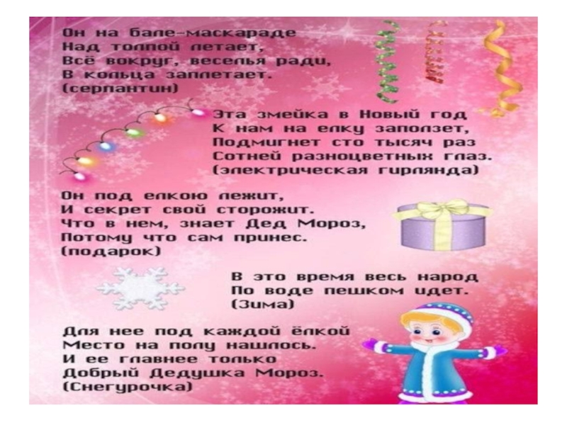 Презентация, доклад на тему НОВОГОДНИЕ ЗАГАДКИ (Дидактический материал для коррекционной школы)