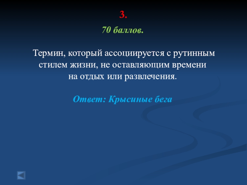 3.  70 баллов. Термин, который ассоциируется с рутинным стилем жизни, не оставляющим времени на отдых или