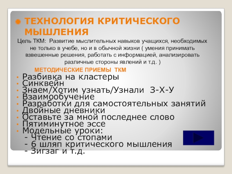 МЕТОДИЧЕСКИЕ ПРИЕМЫ ТКМ