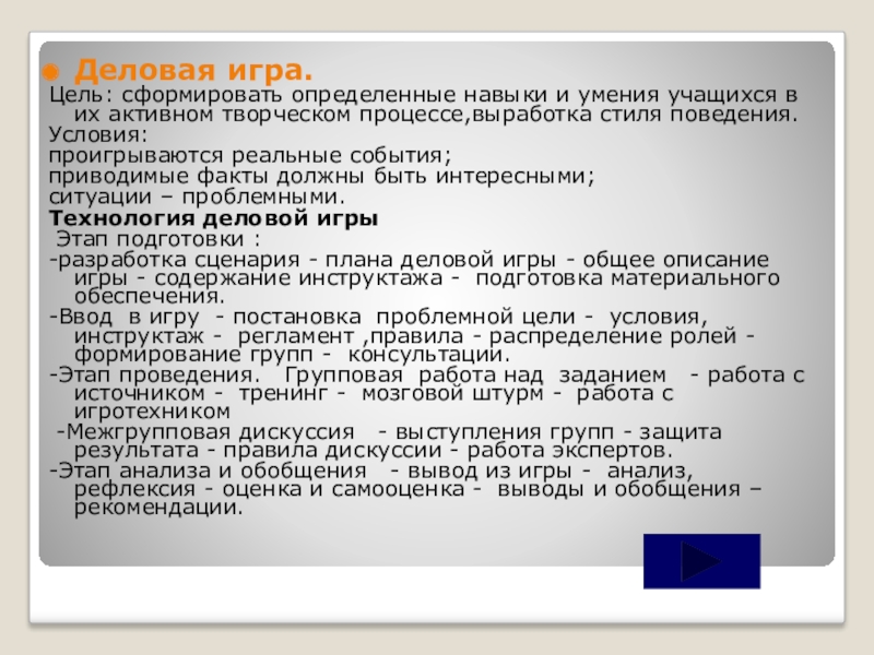 технологию использования в обучении игровых методов: ролевых, деловых и другие видов обучающих игр