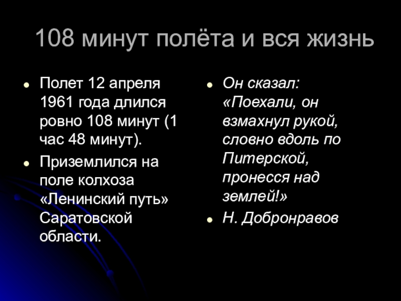 Он сказал: «Поехали, он взмахнул рукой, словно вдоль по Питерской, пронесся над землей!»