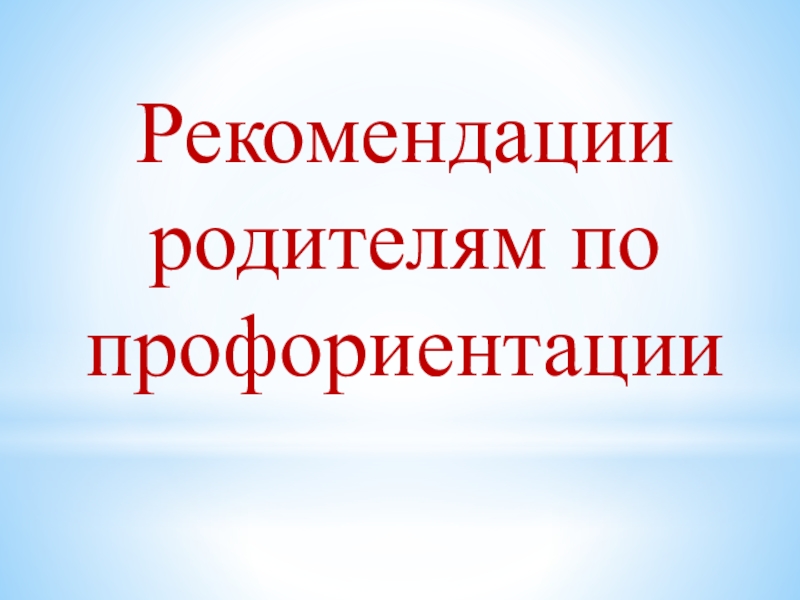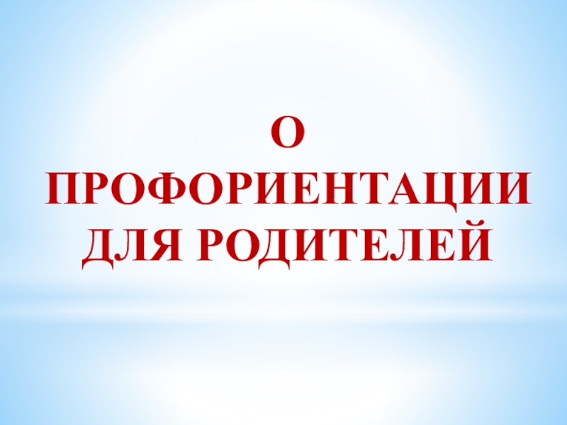 О ПРОФОРИЕНТАЦИИ ДЛЯ РОДИТЕЛЕЙ