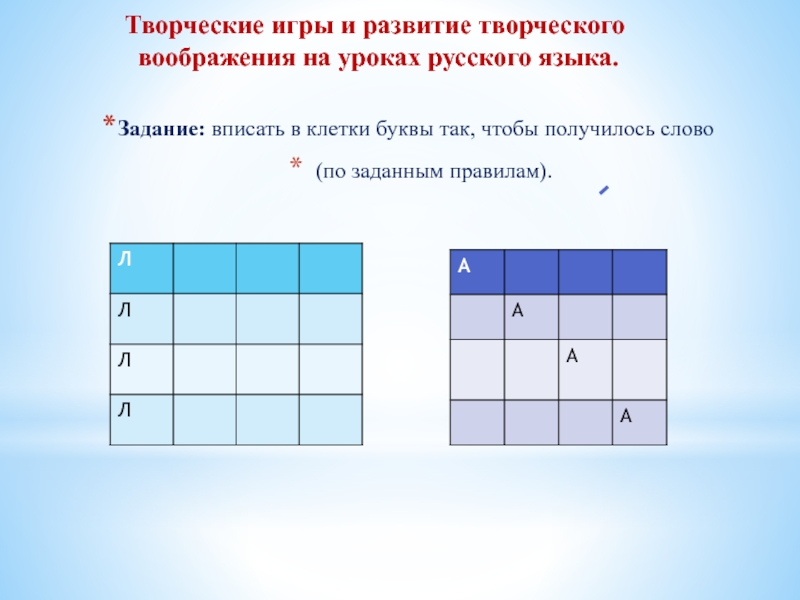 в клетки буквы так, чтобы получилось слово
