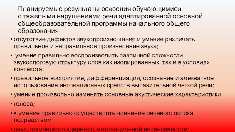 правильное восприятие, дифференциация, осознание и адекватное использование интонационных средств выразительной четкой речи;