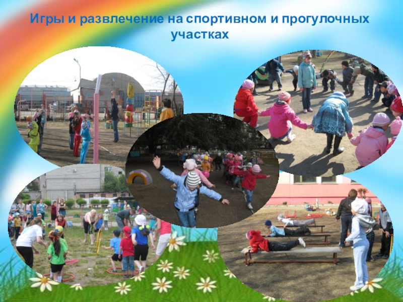 Слайд 13Игры и развлечение на спортивном и прогулочных участках