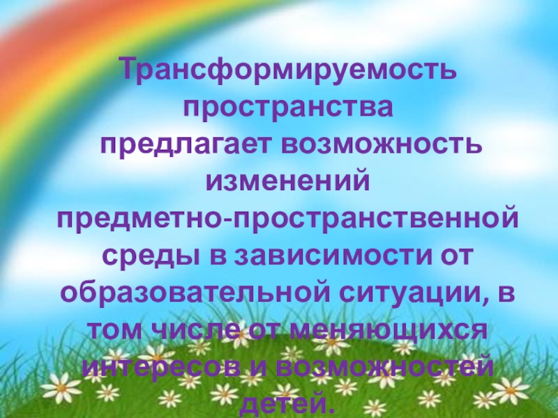 Презентация, доклад на тему Образовательная ситуация, как фактор трансформируемости развивающей предметно-пространственной среды