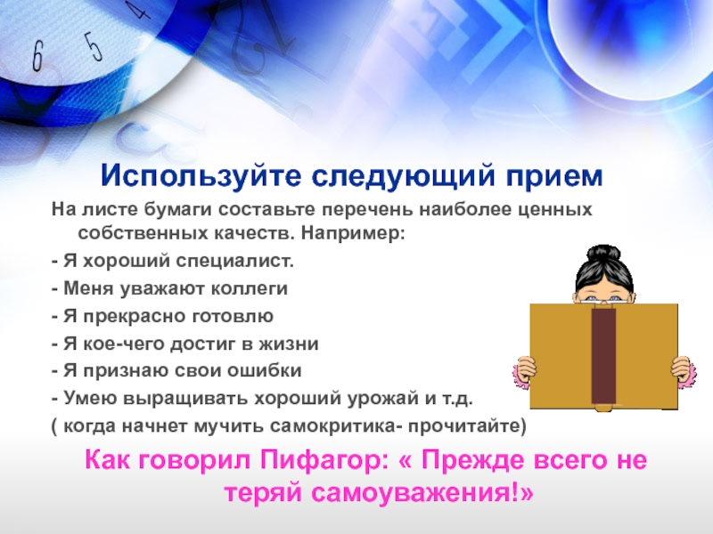 9 Человек не уверен в себе, не чувствует удовлетворения и гордости, хотя и достиг чего- то в жизни.