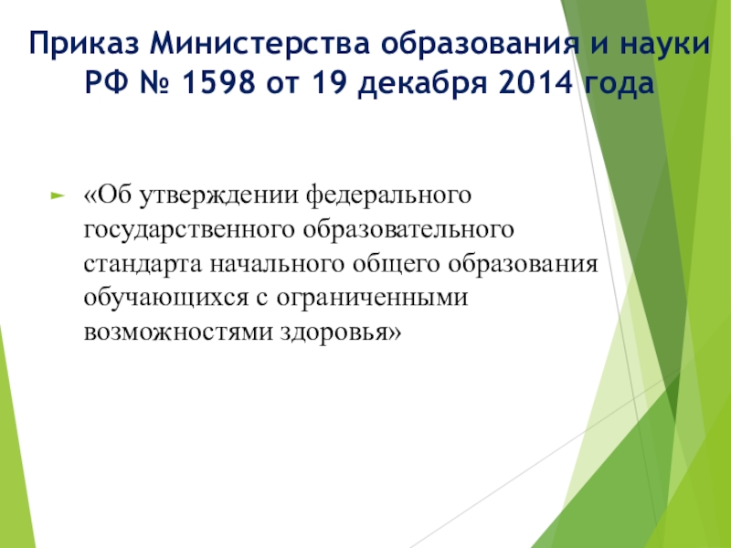 Слайд 5Приказ Министерства образования и науки РФ № 1598 от 19 декабря