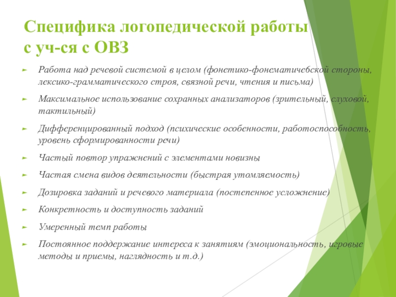 Слайд 20Особенности логопедического сопровождения детей с ОВЗ