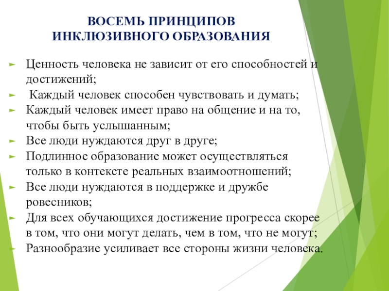 Слайд 7ВОСЕМЬ ПРИНЦИПОВ ИНКЛЮЗИВНОГО ОБРАЗОВАНИЯ
